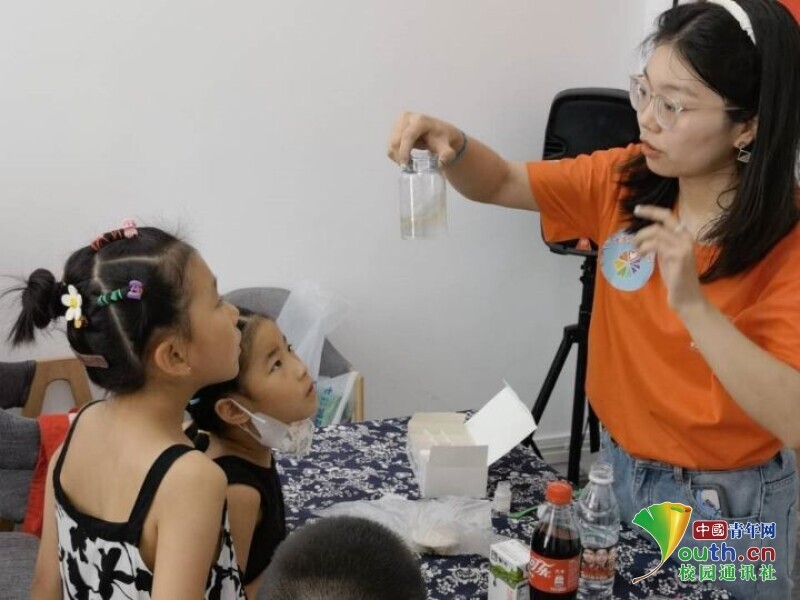 图为队员刘颖清在向小朋友讲解食品添加剂。中国青年网通讯员 万昕怡 供图