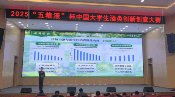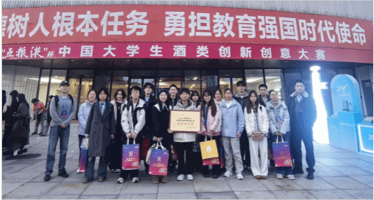 本次大赛以“浓香新世代 青春创未来”为主题,包含品酒比赛、包装营销创意比赛和酒类创新比赛三大项目,通过校级区域赛、省级片区赛的层层闯关,最终500名参赛选手汇聚宜宾展开全国总决赛的精彩对决。学校选派推荐的20名师生到现场参赛,品酒赛道5名选手历经理论笔试与实操考核的双重考验,展现出精准的感官鉴别能力与专业理论储备。在竞争激烈的酒类创新赛道,5支晋级团队紧扣大赛主题,立足五粮液“五粮和美”文化,围绕健康新品研发、酿酒科技升级、品牌年轻化等方向展开创新设计,凭借扎实的科研基础与新颖的创意构思脱颖而出。包装创意赛道的3支晋级团队则结合五粮液品牌内涵与现代设计潮流,通过创意文案与现场路演诠释作品的设计巧思。